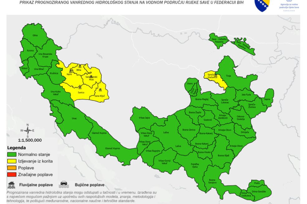 Obavještenje o prognozi vanrednog hidrološkog stanja odnosi se na područje Unsko-sanskog i Tuzlanskog kantona, odnosno gradova/općina: Sanski Most, Ključ i Gračanica.