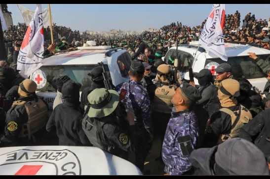 Izraelska vlada je odgodila oslobađanje više od 100 palestinskih zatvorenika nakon užurbanih scena oko oslobađanja dva izraelska taoca i pet tajlandskih državljana u Gazi ranije u četvrtak. Sedmorica talaca bila su okružena gomilom militanata dok su hodali do vozila Crvenog krsta.