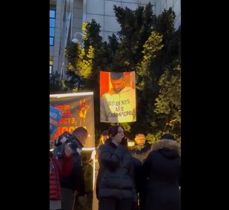 Nije dugo trebalo da se njegova poruka postane viralna, pa se njegov lik našao i na transparentu u Novom Sadu.