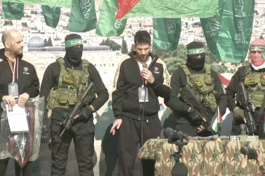 Yair Horn, Sagui Dekel-Chen i Alexander Trufanov su predani Međunarodnom komitetu Crvenog križa (ICRC) nakon što su ih oslobodila vojna palestinskih grupa Hamas, u sklopu dogovora o primirju s Izraelom.