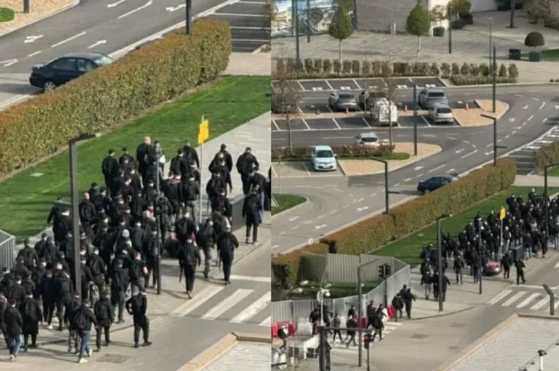 Kako je objavljeno, veća grupa muškaraca koji su obučeni isto, skoro pa uniformisano, izašla je iz poznatog restorana, kako objavljuje Instagram stranica Moj_Beograd. Autor videa je prokomentarisao da idu "kao vojska, bato".