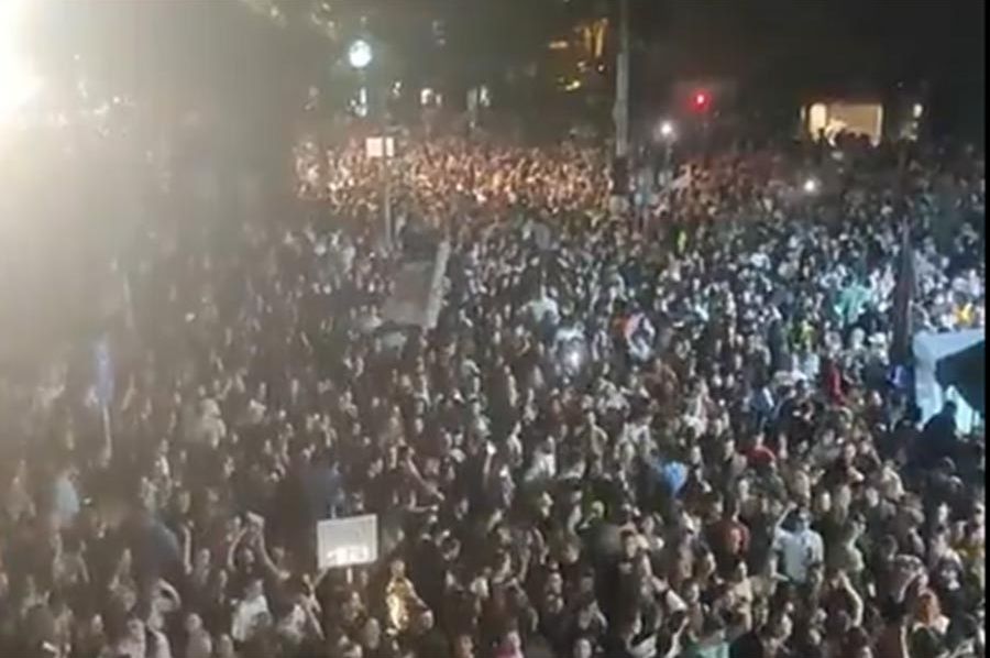 Blokirani su svi ulazi i prilazi RTS, a okupljene zabavlja di-džej. Reporter Bete javlja da je bilo prisutno više hiljada ljudi.