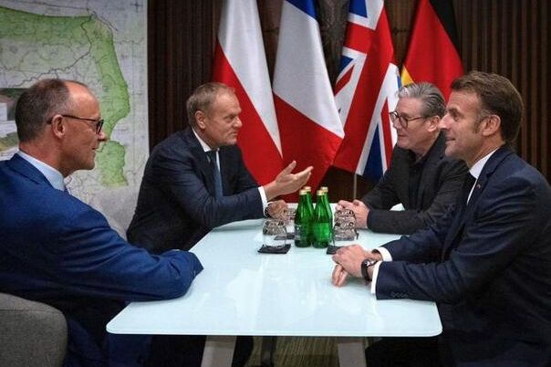 "Na putu smo za Kijev. Za Ukrajinu, za Europu", objavio je francuski predsjednik Emanuel Macron uz zajedničku fotografiju s britanskim premijerom Keirom Starmerom, njemačkim kancelarom Freidrichom Merzom i poljskim premijerom Donaldom Tuskom.