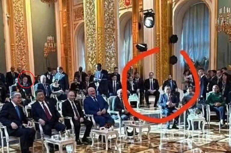 Predsjednik Srbije Aleksandar Vučić komentirao je fotografiju iz Moskve koja se dijeli na društvenim mrežama, a na kojoj se vidi da sjedi u drugom redu, navodeći da se radi o fotografiji s koncerta i da su sjedili po abecednom redu.