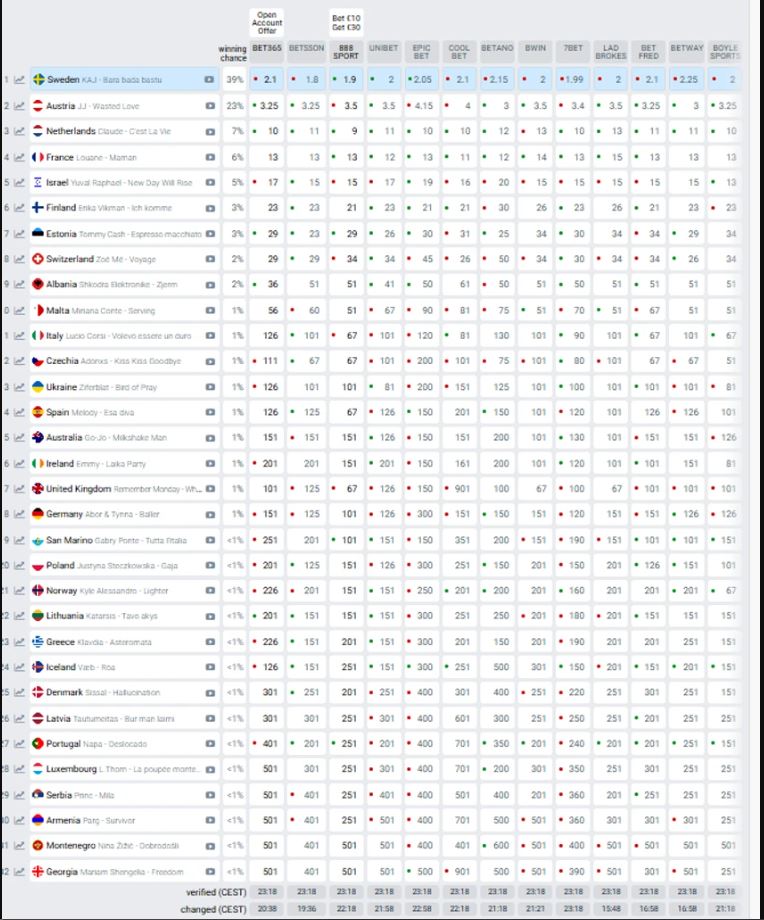 Kladionice pobjedu na Evroviziji 2025 predviđaju Švedskoj, ali iako su im do sada predviđali 44% šanse za pobedu, taj procenat se smanjio na 39%.
