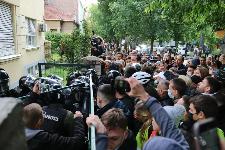 Došlo je do sukoba kada su pristalice SNS-a počele gađati okupljene flašama, a pogođeni su i pripadnici policije. Situacija je brzo eskalirala, pa je policija upotrijebila pendreke kako bi uspostavila red.