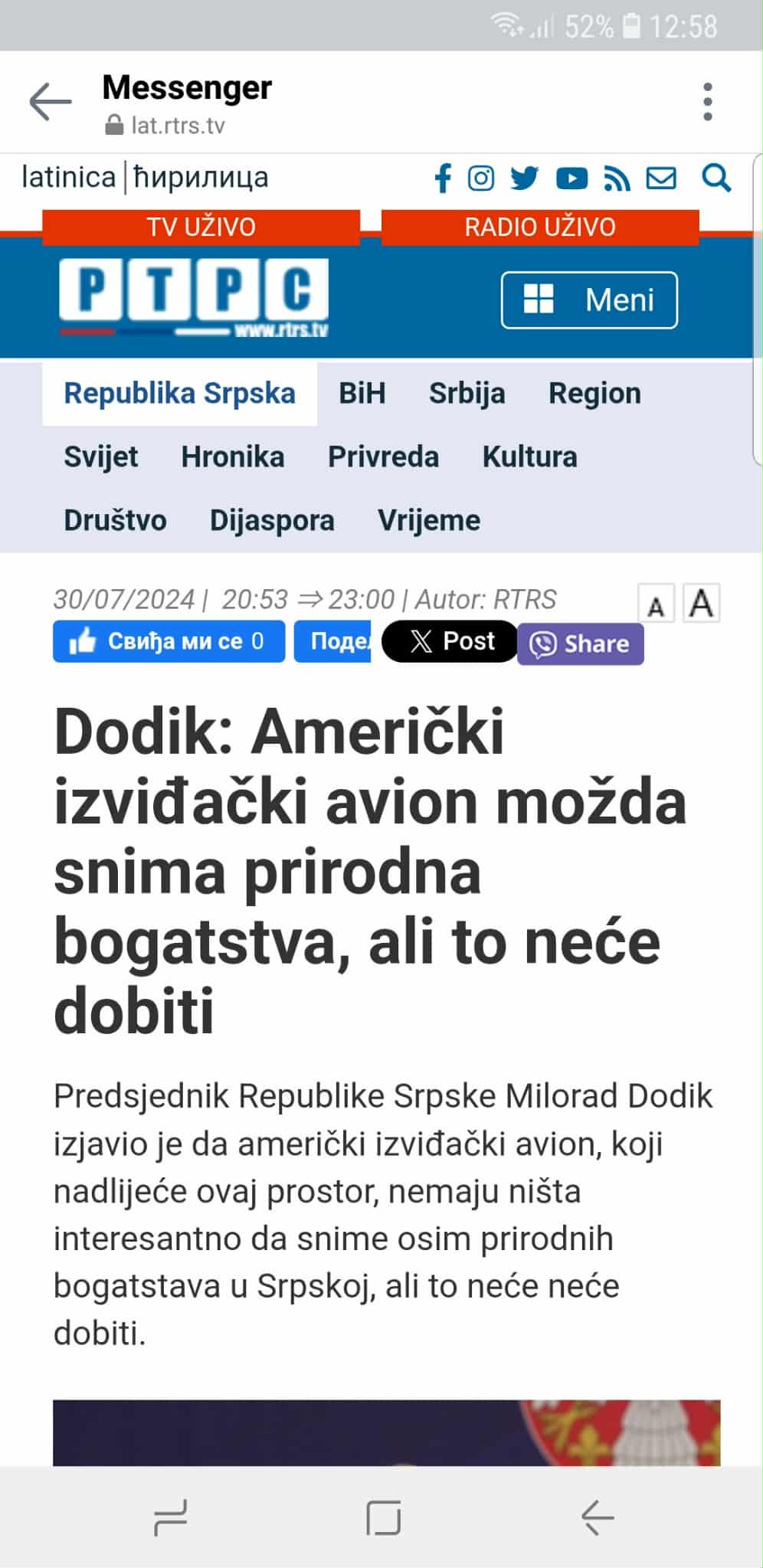 U julu prošle godine Dodik je, komentarišući američki izviđački avion koji je nadlijetao regiju, izjavio: