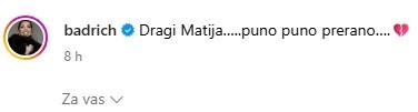 Dirljivu objavu Matiji je ranije posvetio i Petar Grašo, kao i brojni drugi prijatelji i kolege, prenosi Index.