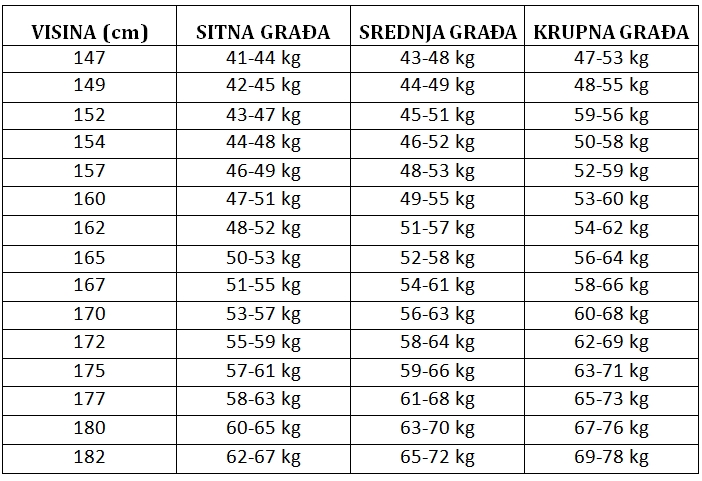 *Napomena: Ove vrijednosti su okvirne i zasnovane na ženi prosječne visine od 170 cm.