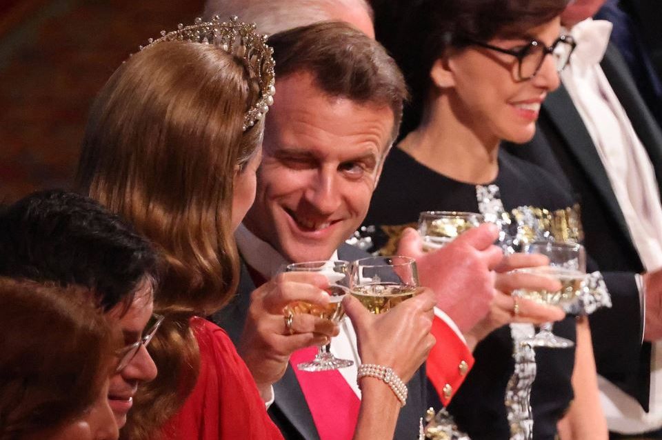 Fotoreporteri su "ulovili" trenutak u kojem Emmanuel namiguje nasmijanoj Kate dok joj nazdravlja. S njegove druge strane sjedio je kralj Charles, koji se nekoliko puta glasno nasmijao na šale francuskog predsjednika.