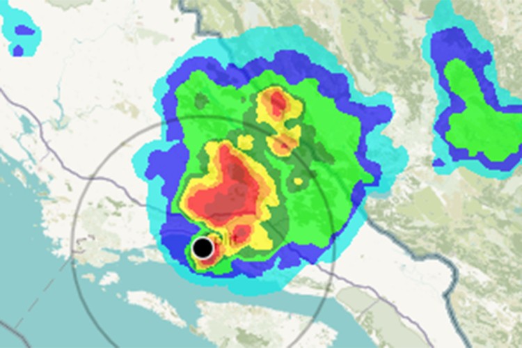 Kako se vidi na sistemu Rain Alarm oluja bi mogla punom snagom i proći preko Splita, a temperatura je već pala.