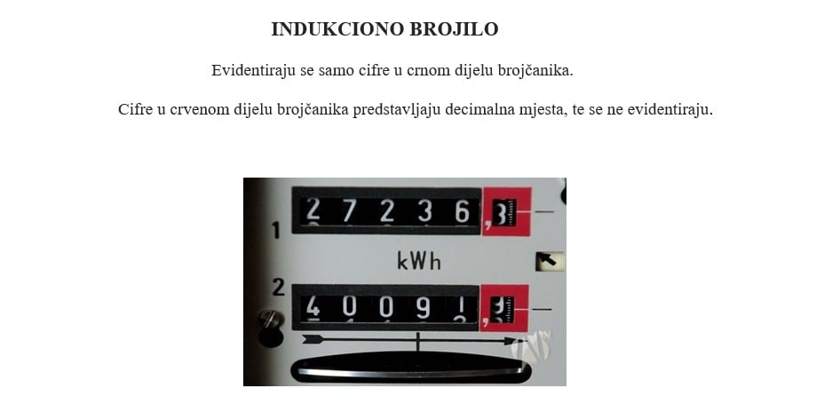 Uputstvo o načinu očitanja utroška električne energije, odnosno stanja brojčanika brojila, dostupno je i na portalu JP Elektroprivreda BiH.