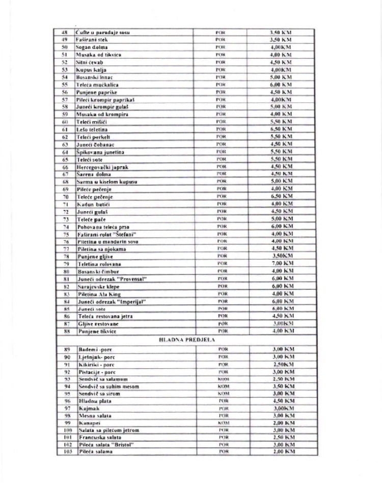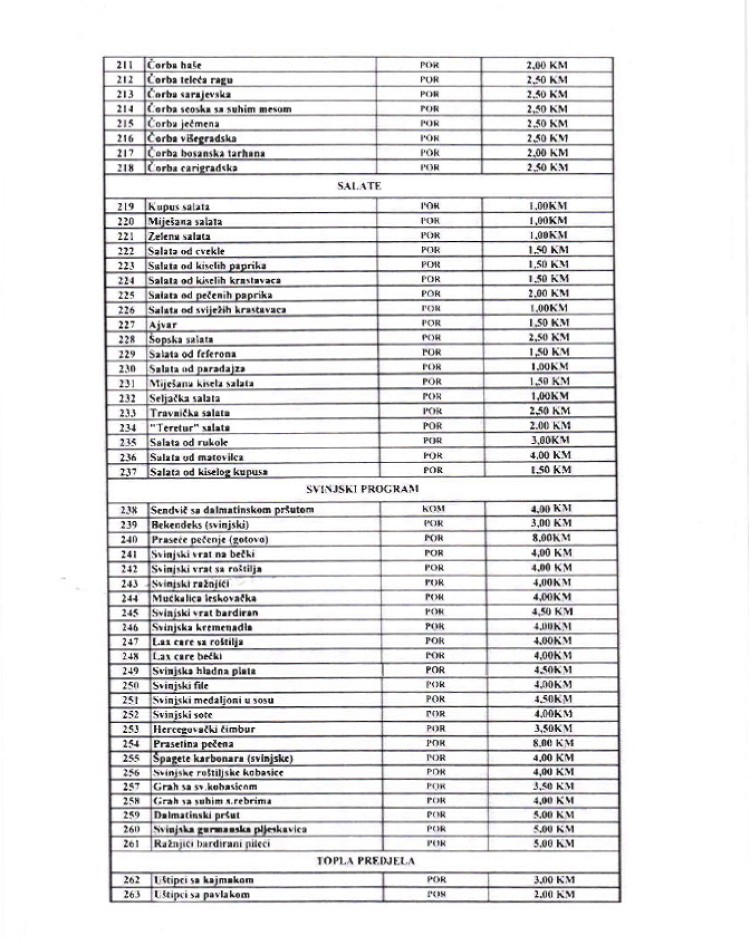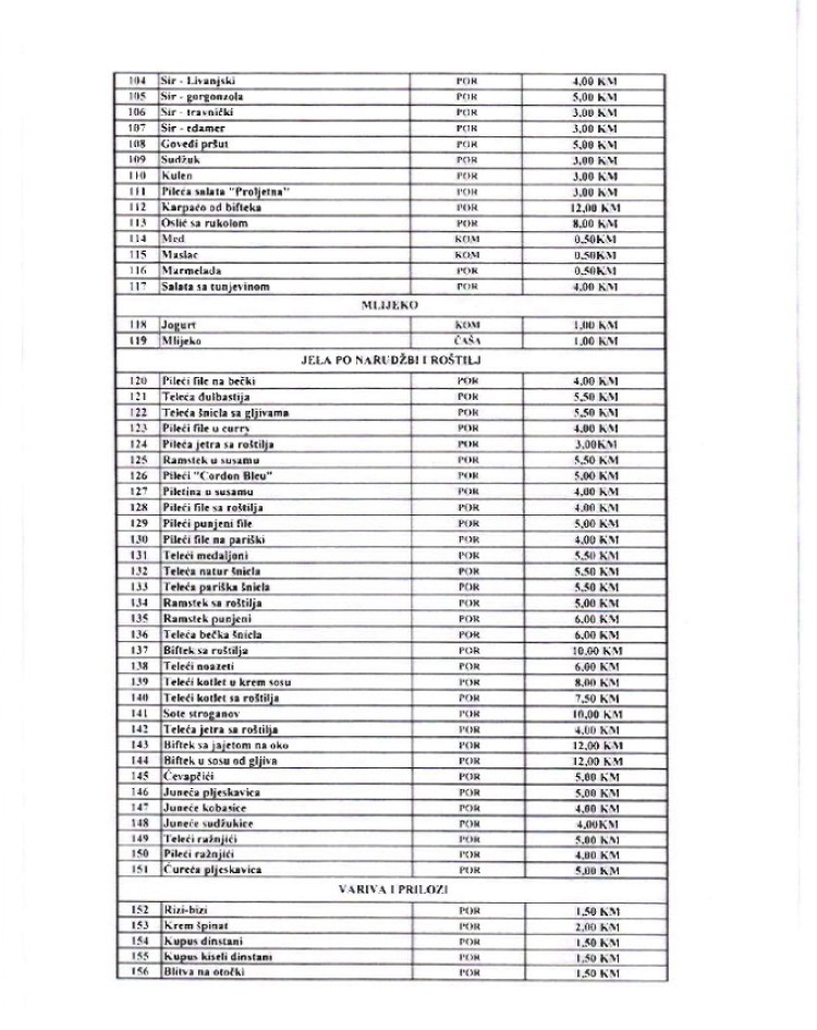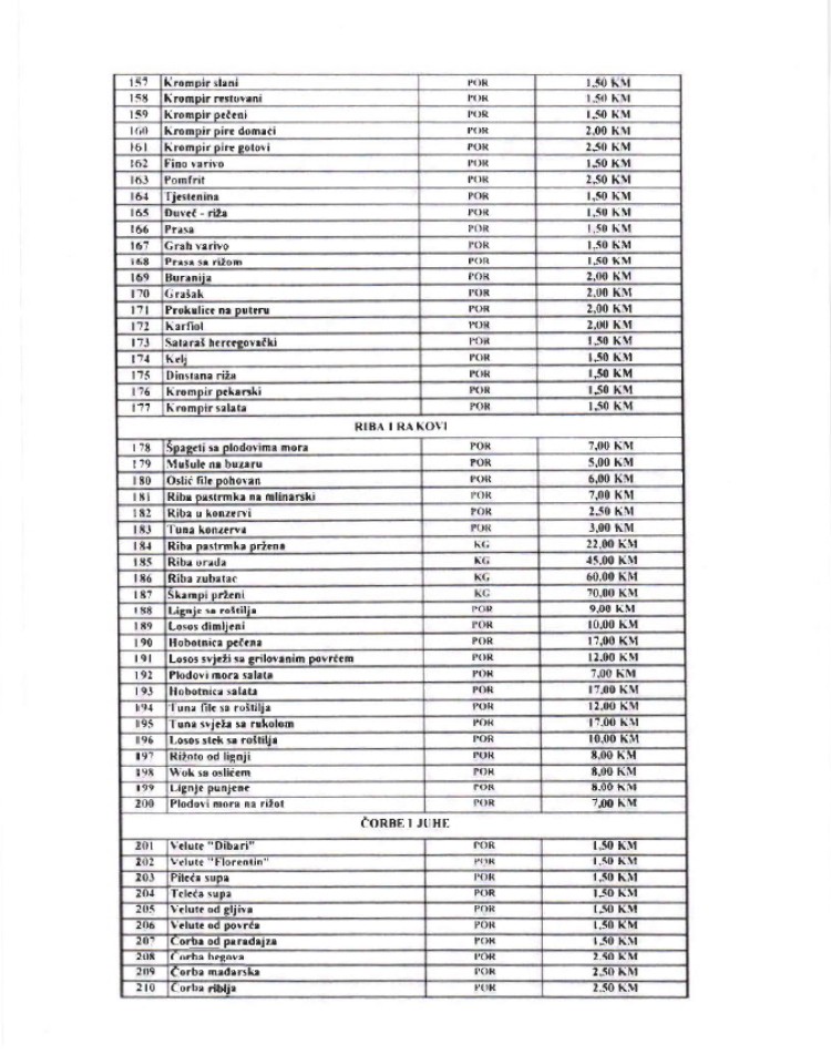 "Skočile" su i cijene priloga, pa će tako pekarski krompir plaćati 1,5 KM umjesto marku.