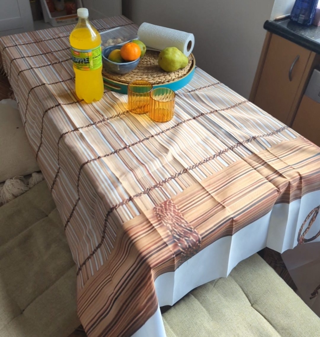 Umjesto pravih roletni, za oko 10 australijskih dolara (oko 6 eura) dobila je komad tanke tkanine s odštampanim uzorkom bambus roletni – nešto što je više ličilo na stolnjak nego na funkcionalnu zavjesu.