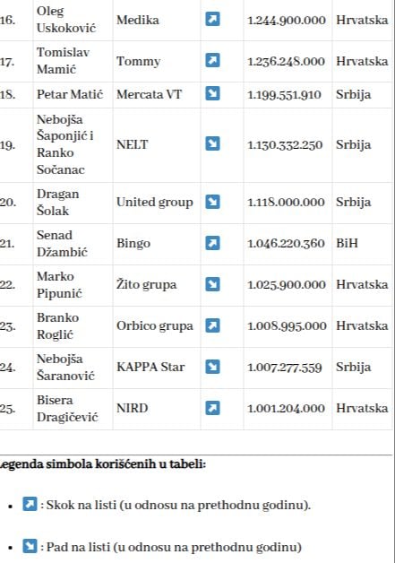 - jedan bosanskohercegovački biznismen — Senad Džambić, vlasnik Binga, s vrijednošću od 1,046 milijardi eura.