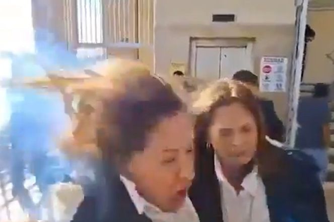 The National Party congresswoman Gladys Aurora López was struck by a thrown explosive device, a mortar-like firework bomb, as she arrived at the National Congress… pic.twitter.com/3o06zkcst4