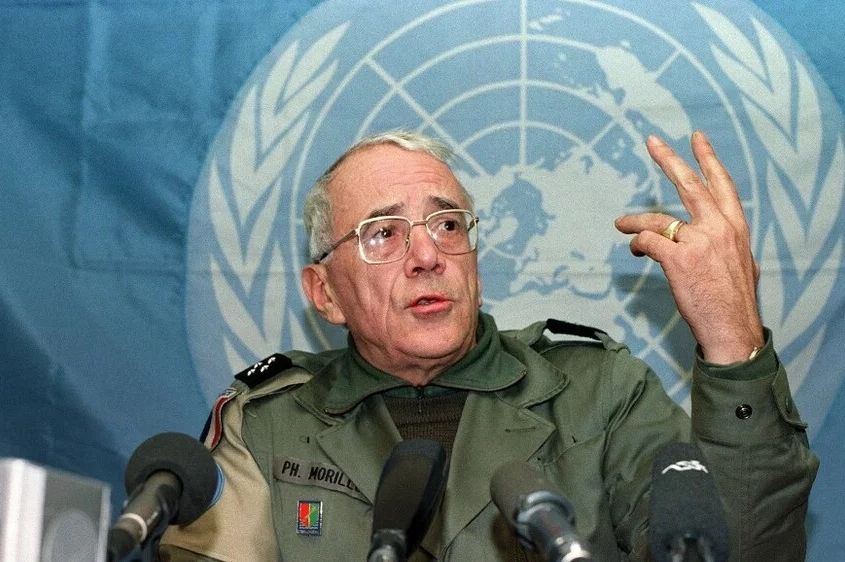 Dolazak generala Philippea Morillona u Srebrenicu 1993. godine nije bio čin herojstva, već posljedica pritiska očajnih civila. Pri pokušaju odlaska iz enklave, njegov konvoj zaustavile su tisuće žena i djece, koji su u njemu vidjeli jedinu prepreku napredovanju snaga Vojske Republike Srpske.