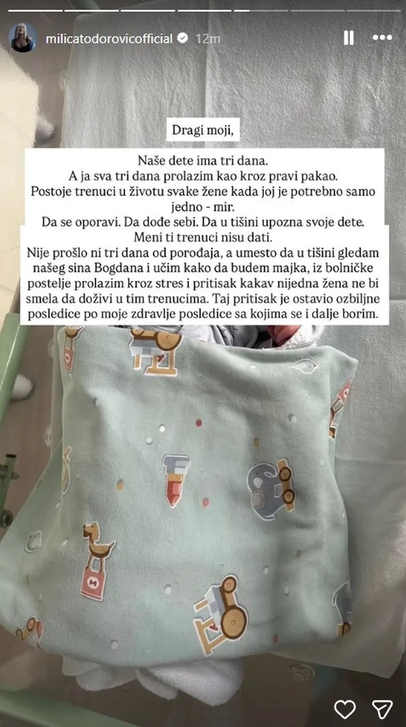 Milica je objavila fotografiju svog malenog sina, čije je lice prekrila tekstom saopćenja koje je uputila javnosti.