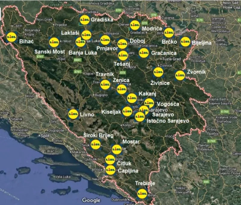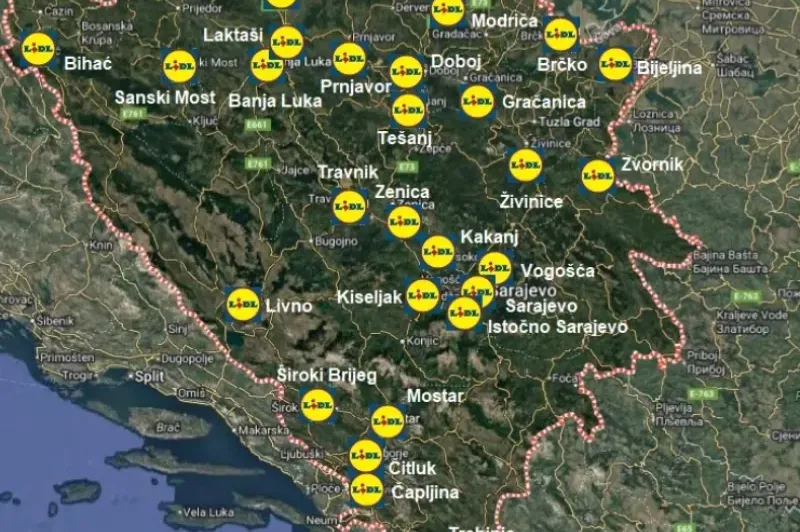 Njemačka trgovačka kompanija Lidl intenzivno se priprema za ulazak na tržište Bosne i Hercegovine, a lista gradova u kojima planira otvoriti svoje prodavnice sve je duža. BiznisInfo.ba donosi ekskluzivnu mapu i pregled lokacija na kojima je Lidl već izgradio objekte, gdje je gradnja u toku ili se tek priprema.