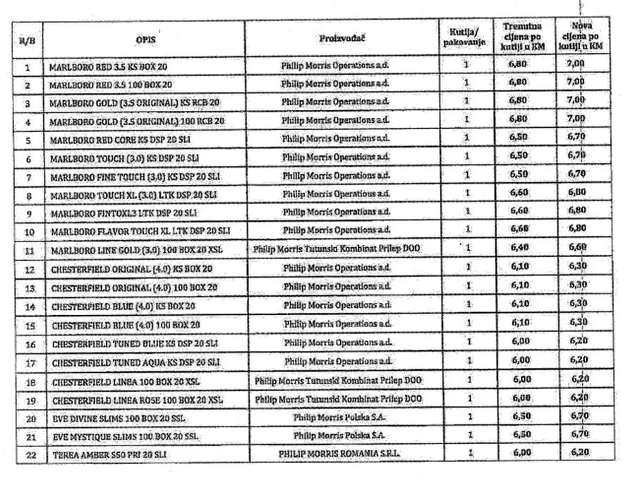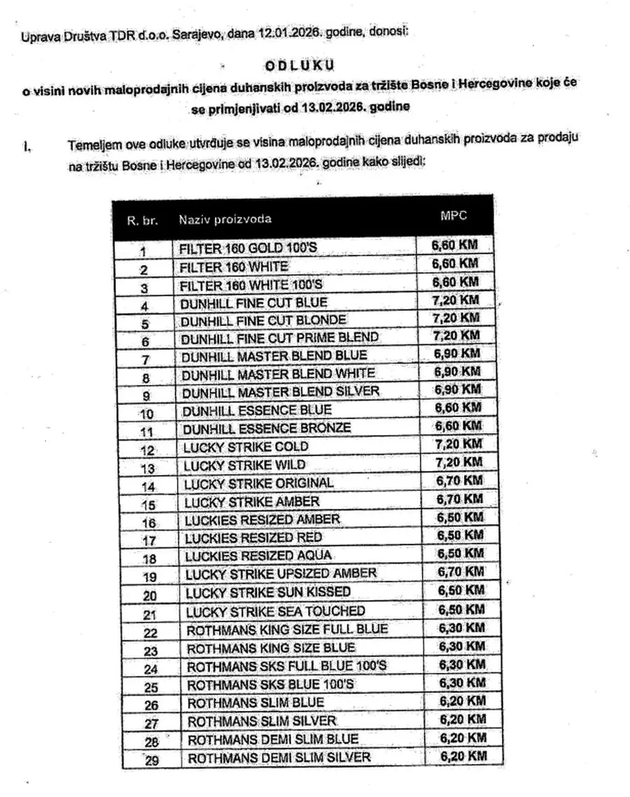 Cigarete kompanije TDR poskupjet će od 13. februara, zatim od 19. februara primjenjuju se nove cijene Philip Morrisa, a od 9. marta to će učiniti Nelt.
