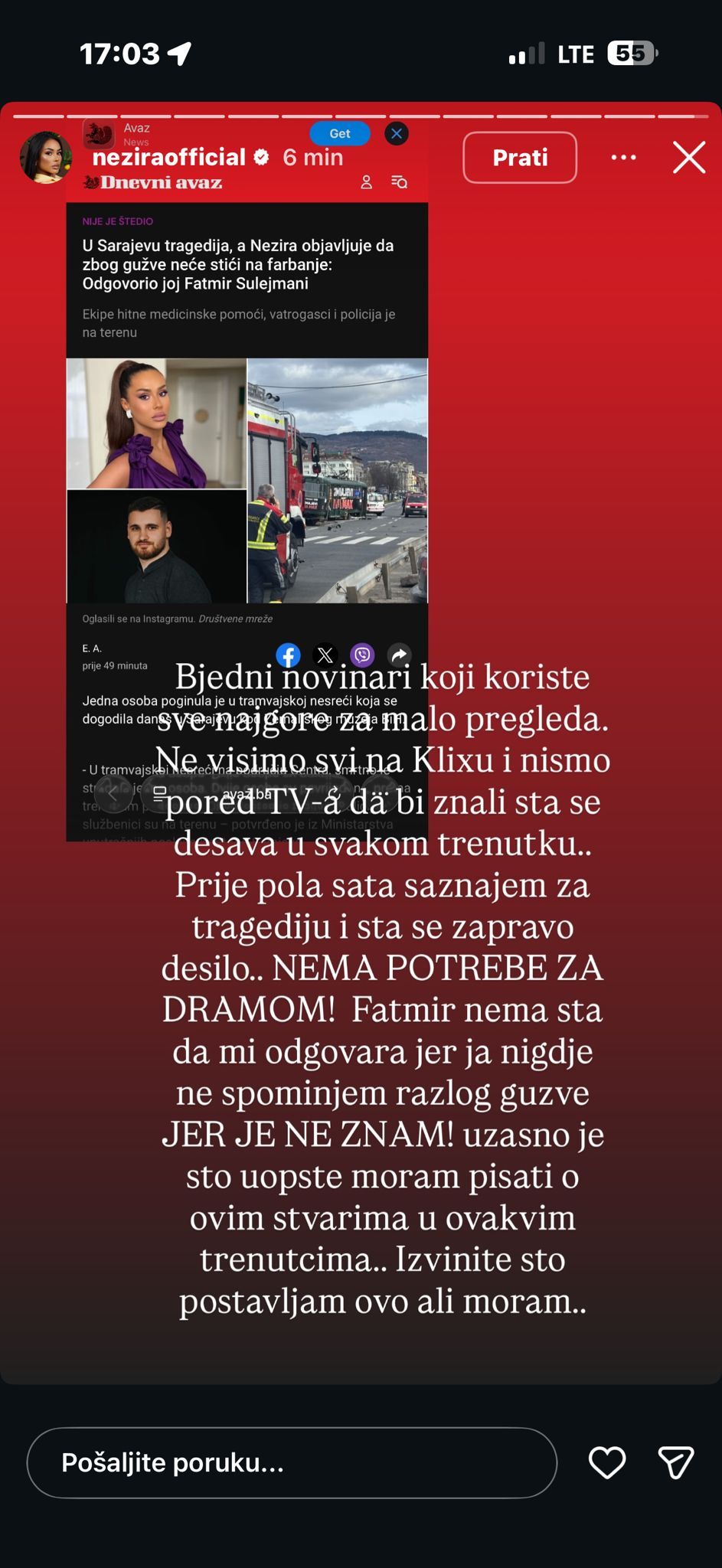 Nakon toga, Nezira se ponovo oglasila i oštro prozvala medije.
