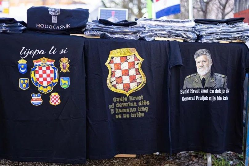 Tako su primijećeni simboli i obilježja pojedinih vojnih jedinica iz rata u Hrvatskoj i Bosni i Hercegovini, prikazi mapa koje podsjećaju na teritorijalno proširenu Hrvatsku s dijelovima BiH, ustaški pozdrav „Za dom spremni“, koji je i u Hrvatskoj tema javnih polemika, kape s grbom NDH, kao i majice s likom i citatima osuđenog ratnog zločinca Slobodana Praljka, te drugi slični motivi.