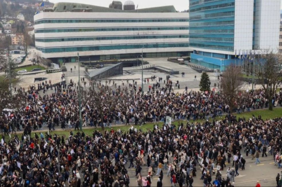 Današnji skup, prema svemu sudeći, najmasovniji je do sada. Hiljade građana okupilo se kod Zemaljski muzej Bosne i Hercegovine, gdje je saobraćaj u potpunosti blokiran.