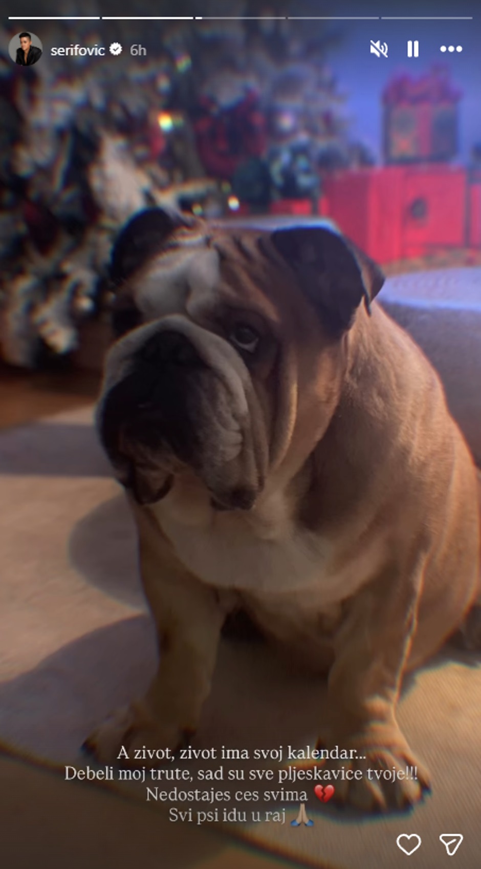 Srpska pjevačica Marija Šerifović sinoć je u kasnim satima objavila tužnu vijest. Naime, uginuo je njezin kućni ljubimac, engleski buldog imena Huck. Bio je dio njezine obitelji, često ga je objavljivala na društvenim mrežama, a s pratiteljima je dijelila anegdote sa svojim kućnim ljubimcem, koji je bio umiljat, simpatičan i proždrljiv. Od njega se oprostila emotivnim riječima: "A život, živo ima svoj kalendar... Debeli moj trute, sad su sve pljeskavice tvoje!!! Nedostajat će svima. Svi psi idu u raj", podijelila je i njegovu preslatku fotografiju. "Zauvijek najljepši, Huck the Gladiator. 9. 2. 2017. - 12. 3. 2026.", dodala je Marija Šerifović.