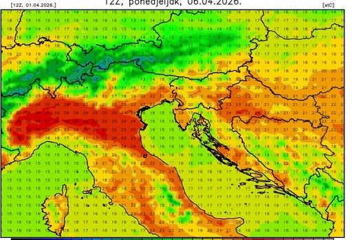 Meteorolozi Istrameta objavili su prognostičke karte za regiju i poručili: "Braćo i sestre, neki krajevi bi nakon Uskrsa mogli biti bliže 30 °C nego 20 °C. Vraća se crvenilo lagano."