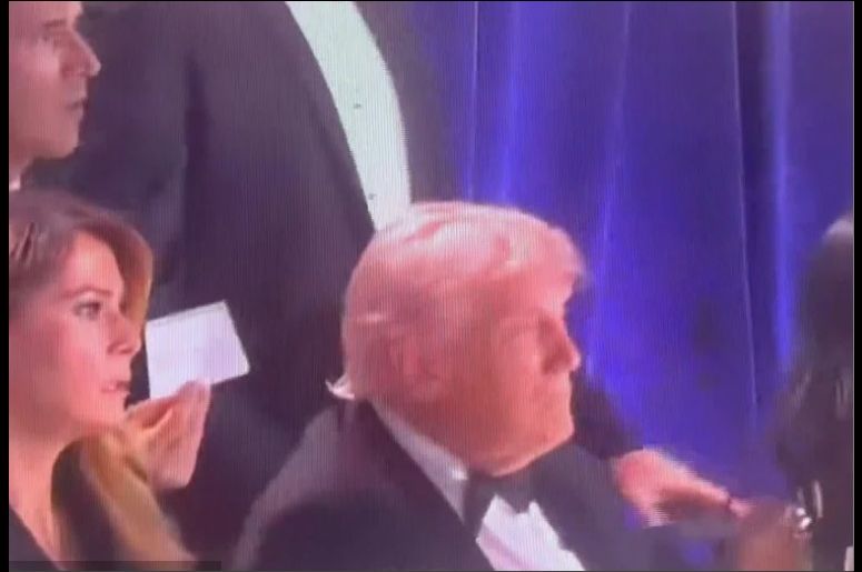Kako se vidi na snimku iz drugog ugla, Melania je odmah nakon što se začuo pucanj, sjela pod stol dok je Trump čekao agente da ga odvedu.