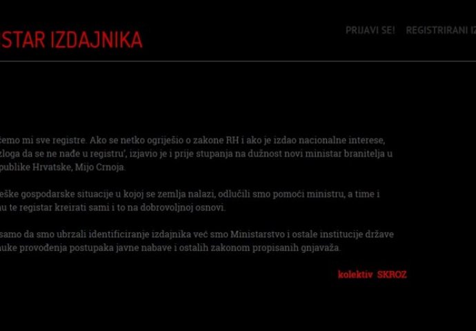 Nakon što je novi hrvatski ministar za pitanja ratnih veterana Mijo Crnoja najavio izradu "registra izdajnika" nacionalnih interesa Hrvatske, a podržao ga potpredsjednik Vlade Hrvatske, kolektiv SKROZ napravio je internet stranicu na kojoj se svi "izdajnici" mogu sami potpisati.