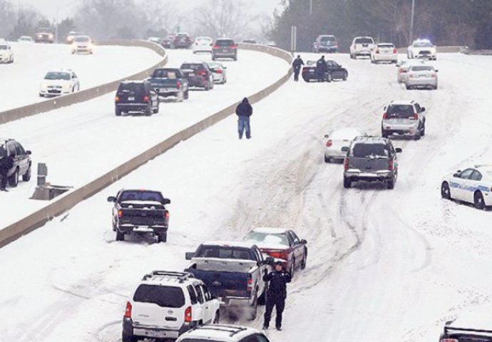 U sudaru, koji se desio juče na autoputu 78 za vrijeme kratkotrajne snježne oluje, učestvovalo je 64 automobila i desetak teretnih vozila.