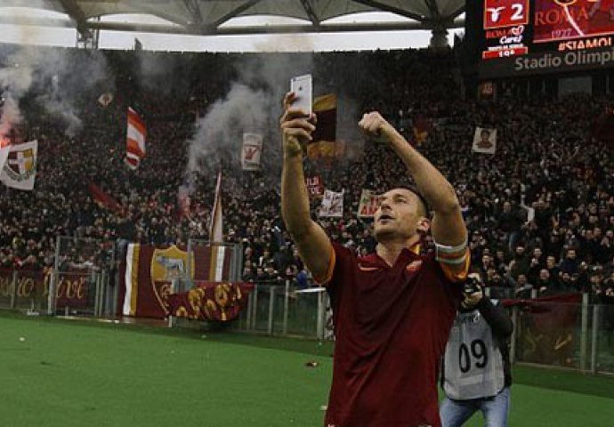 Francesco Totti ne koristi se društvenim mrežama, ali u derbiju protiv Lazija išao je u korak s vremenom i nakon pogotka “kliknuo” selfie, s Rominim navijačima u pozadini.