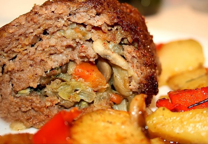 Mesnu roladu možete puniti prema vašim željama, a u ovom receptu je punjena sa gljivama i povrćem. Uz dodatak pečenog krompira rezultat je jako ukusan obrok.