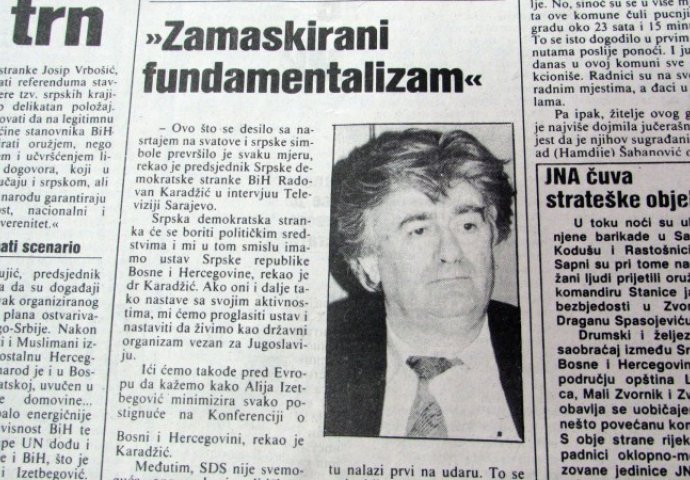 Ovo su riječi koje je sa skupštinske govornice u oktobru 1991. godine izrekao Radovan Karadžić, kome u četvrtak Haški tribunal treba izreći presudu za ratne zločine počinjene tokom agresije na BiH 1992.-1995. godine.