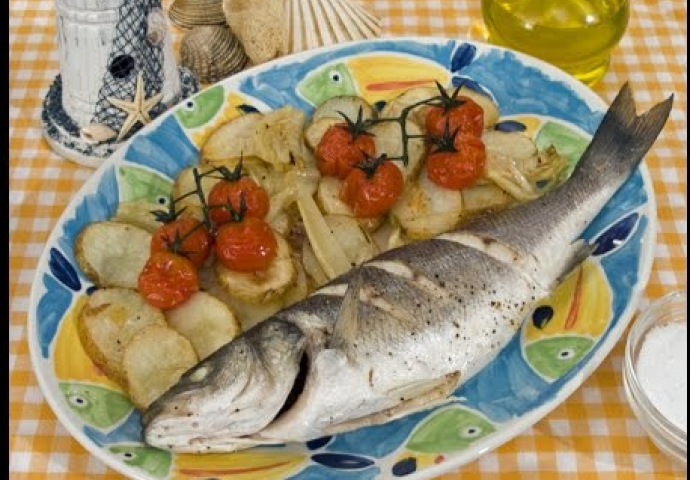 Brancin s mladim krompirom i mini paradajzom pečen u pećnici (VIDEO)