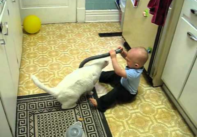 Slatki mačak ne može prestati glavom nježno udarati malog Liama kojeg to neizmjerno veseli.