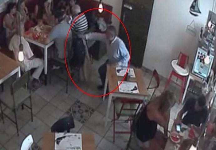 Kako pokazuje snimka s nadzorne kamere koju su iz restorana objavili na svojoj Facebook stranici, naizgled sredovječni muškarac u plavim trapericama, svijetlo plavoj košulji i kratke kose oprezno je ušao u objekt te se ogledavao po prostoriji.