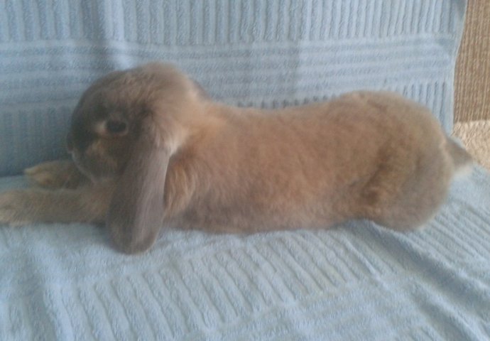 "Ovo je moj mali Rambo od godinu i pol", kaže vlasnica ovog kunića, dodavši da je ovo Rambova omiljena poza za odmaranje.