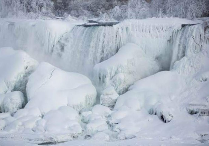 Zbog niskih temperatura koje su okovale ledom čuvene Nijagarine vodopade, ovo mjesto postalo je pravi magnet za turiste koji ne propuštaju priliku da se fotografišu pored Nijagarinih vodopada.